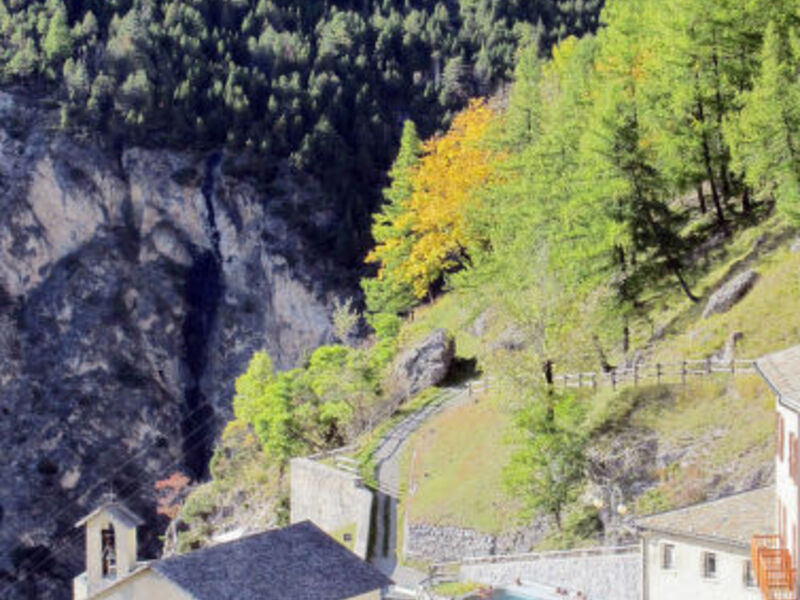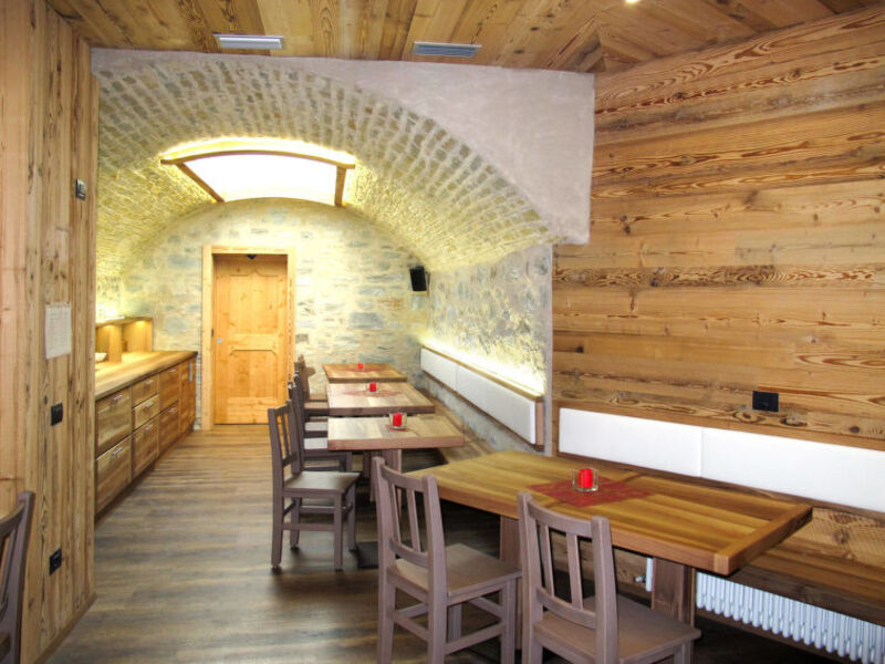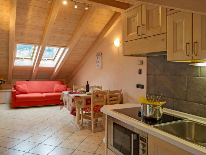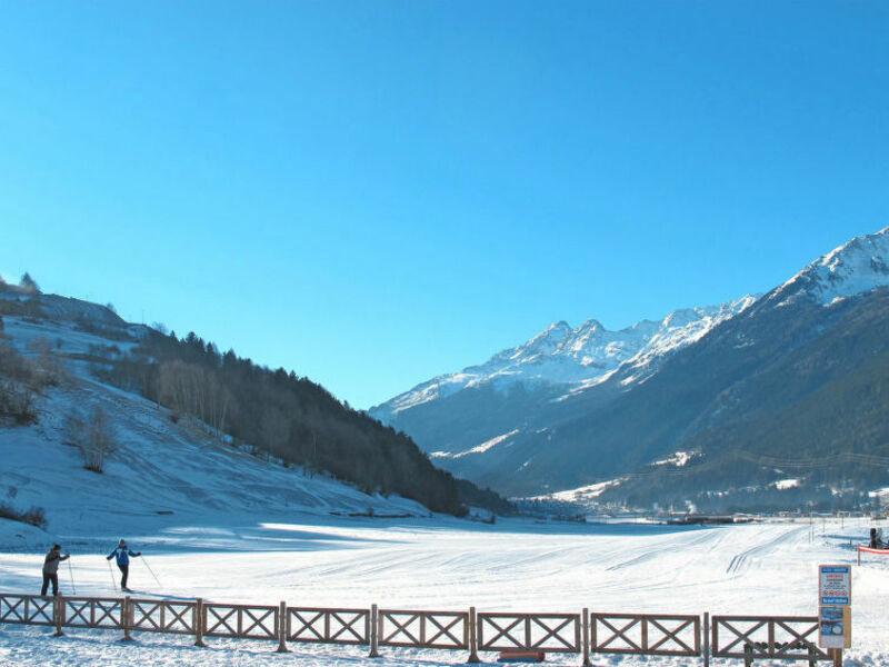 Feature: Property in a residence (14 units in total). Situation: hillside location, in the district Cepina. Access/parking: parking on the estate. Estate (shared use with the owner and holiday guests): open plot, terraced, meadow. Outdoor facilities(shared use): furnishing provided, lounge furniture (permanently mounted), summer kitchen (dining area, hob).Wellness: shared use (free of charge): sauna, steam bath. Sports facilities/ leisure time: shared use (free of charge): children's playing equipment.Infrastructure: washing machine (shared use, payment); bikeshed; Ski/skiboot storage room (ski boot dryer). Included: barbecue rental.● Distances: Center Bormio in approx. 4.8 km. Cepina in approx. 800 m. Livigno in approx. 40 km. Next supermarket (Cepina) in approx. 30 m.Airport Milano/Linate in approx. 200 m. Wellness in approx. 5.4 km, reduced entrance for INTER CHALET guests (Bormio Terme). Golf course Bormio Golf (9-hole golf course) in approx. 6.2 km. Ski run Bormio2000 in approx. 4.1 km. Cima Piazzi in approx. 6.2 km. Ski bus stop in approx. 50 m.