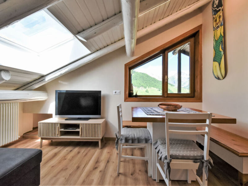 Malý, komfortní rodinný dům "Caterina View", 1'816 m n.m., 3-podlažní. 1.5 km od centra Livigno, klidná poloha ve svahu, ve vilové čtvrti, přímo u lesa, 250 m od lyžařské oblasti. V domě: odkládací místnost na kola, sluneční terasa, lyžárna, ústřední topení. V zimě nutné sněhové řetězy. Parkovací místo (kryté) u domu, veřejné parkoviště 100 m na ulici. Supermarket 500 m, restaurace 200 m, bar, kavárna, krytý bazén 1 km, termální bazén "Livigno Terme" 1 km. Sedačková lanovka 250 m, půjčovna lyží, lyžařská škola 500 m. Upozornění: auto doporučeno. Skibus zdarma jezdí do lyžařského střediska 100 mt zdarma. Za dobrých sněhových podmínek je dům dostupný na lyžích.