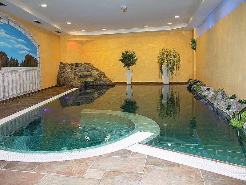 bazén atypického tvaru cca 40 m² s vířivkou až pro 6 osob, umělým vodopádem a lehátky, finská sauna#, aromatická biosauna#, aromatická pára#, ledová lázeň#, hydromasážní sprcha#, multifunkční sprcha#, vertikální solárium#*, relaxační koutek# s lehátky a hudbou, masáže#*, kosmetické služby*, stolní fotbal*; služby označené # nemohou využívat děti do 14 let; v rámci relaxačního centra jsou zdarma nabízeny též ručníky, osušky, voda a bylinkové čaje