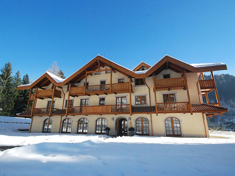 Pěkná, útulná, komfortní rezidence "Holidays Dolomiti", 800 m n. . V osadě Carisolo, v obci 1. km od centra Pinzolo, klidná, slunná poloha, 500 m od sjezdovek.