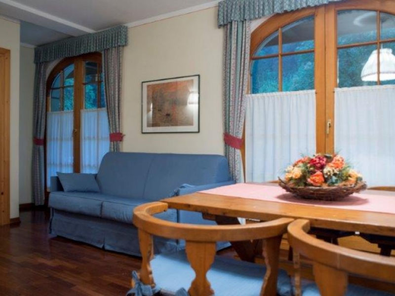 přístup na internet, výtah, odkládací místnost na kola, lyžárna, ústřední topení, sušák lyžařských bot. Společné garáže. Obchod, potraviny 200 m, restaurace 50 m, krytý bazén 9 km, termální bazén "Terme di Comano" 31 km. Golfové hřiště 5 km, tenis 1 km, sedačková lanovka 500 m, zastávka skibusu 100 m, lyžařská škola 900 m, kluziště 1 km.
