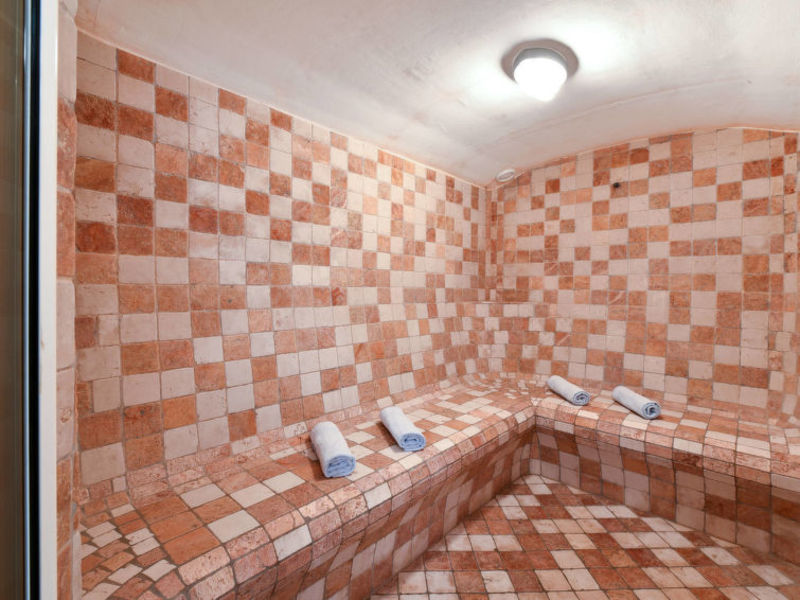 finská sauna, pára, horizontální solárium*, relaxační koutek s lehátky, Kneippův chodník, 2 posilovací stroje, stolní tenis, stolní fotbal