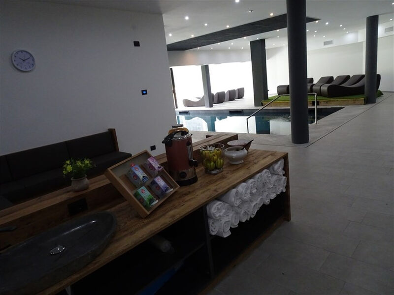 bazén, venkovní minibazén, vířivka#, sauna#, pára#, 2x multifunkční sprcha#, relaxační koutek# s lehátky, Kneippův chodník#*; služby označené # mohou využívat jen osoby od 16 let; v rámci relaxačního centra jsou zdarma nabízeny též bylinkové čaje