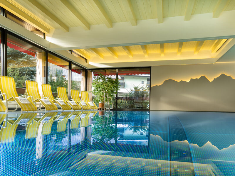 Alpina Spa s termálním bazénem (10 x 6 m, 7-19 h.) s protiproudem (cca 33°C), aromasauna, finská sauna, parní lázeň se zážitkovými sprchami, Kneippovy bazénky a odpočinková místnost (16-19 h.). Za poplatek: masáže.