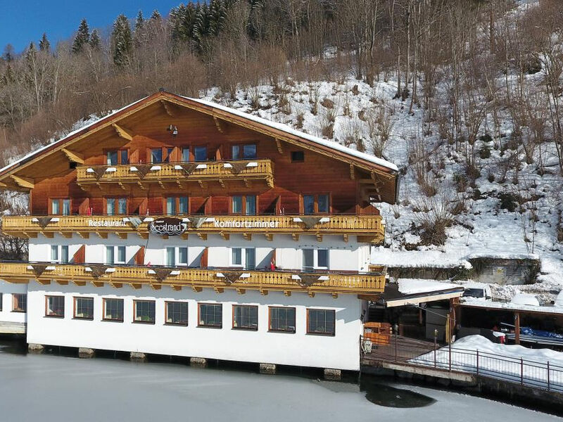 Přímo u jezera Zell am See. Přírodní kluziště a dráha na curling před hotelem.