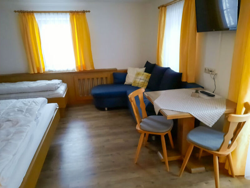 "Althaus 1", 4-pokojový apartmán 120 m2 v 1. patře. Dostatek prostoru a světlý interiér, komfortně a vkusně zařízeno: vstupní hala/předsíň. Obývací pokoj/jídelna s jídelním stolem a TV se satelitním vysíláním. 2x dvoulůžkový pokoj, každý pokoj s umyvadlem a TV se satelitním vysíláním. 1x pokoj s 1x lůžkem, 1x dvoulůžkem, umyvadlem a TV se satelitním vysíláním. Kuchyně (trouba, myčka, 4-plotýnková sklokeramická varná deska, toustovač/topinkovač, mikrovlnná trouba, elektrický kávovar). Koupelna se sprchou a WC. Topení. Balkon. Balkonový nábytek. Nádherný výhled na hory a na krajinu. K dispozici: Internet (WiFi, zdarma). Upozornění: nekuřácké ubytování. 50614-006219-2020