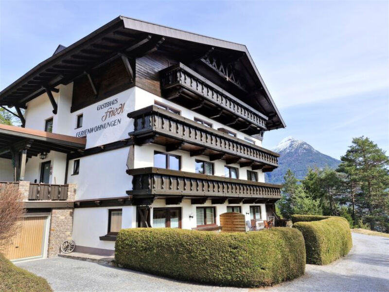 "Ferienwohnung Friedl", 2-pokojový apartmán 55 m2, v horním patře. Komfortně a útulně zařízeno: 1x dvoulůžkový pokoj. Vstup na balkon, jižní orientace. Obytná kuchyně (4-plotýnková sklokeramická varná deska, toustovač/topinkovač, varná konvice, mikrovlnná trouba, elektrický kávovar) s 1x pohovkou pro 2 osoby (180 cm v délce 200 cm), jídelním koutem a TV se satelitním vysíláním (plochá obrazovka). Koupelna se sprchou a WC. Velký balkon, jižní orientace. Balkonový nábytek. Pěkný výhled na hory. K dispozici: Internet (WiFi, zdarma). Upozornění: nekuřácké ubytování. Hlásič kouře. Rekreační objekt je jedním z typu domu nebo apartmánu.