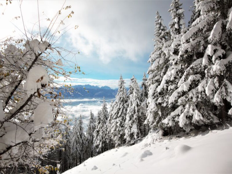 Kanzelhöhe 8 km od Treffen: Velký, komfortní apartmánový dům 1'500 m n. . 5-podlažní. Samostatně stojící, slunná poloha ve svahu, 1. km od sjezdovek, jižní orientace.
