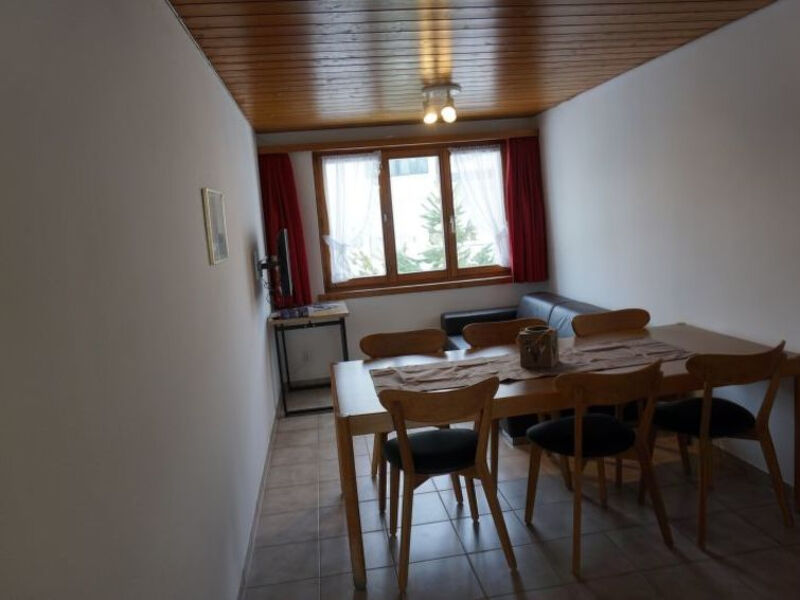 4.5 room apartment, 2 star superior, 70qm (6 beds) in a apartment house, central, quiet location, 5 min walking distance to the liftstation. View of the mountains. 1st floor apartment, reserved parking space. 3 double rooms, dining area, kitchen with oven, fridge, dishwasher, tv, shower/wc, bedlinen and kitchen towels are provided. No living room! Big dining-room with tv. Please bring your own towels. Pets allowed. Bedlinen, final cleaning (CHF 180.00) and visitor`s tax are included in the total.